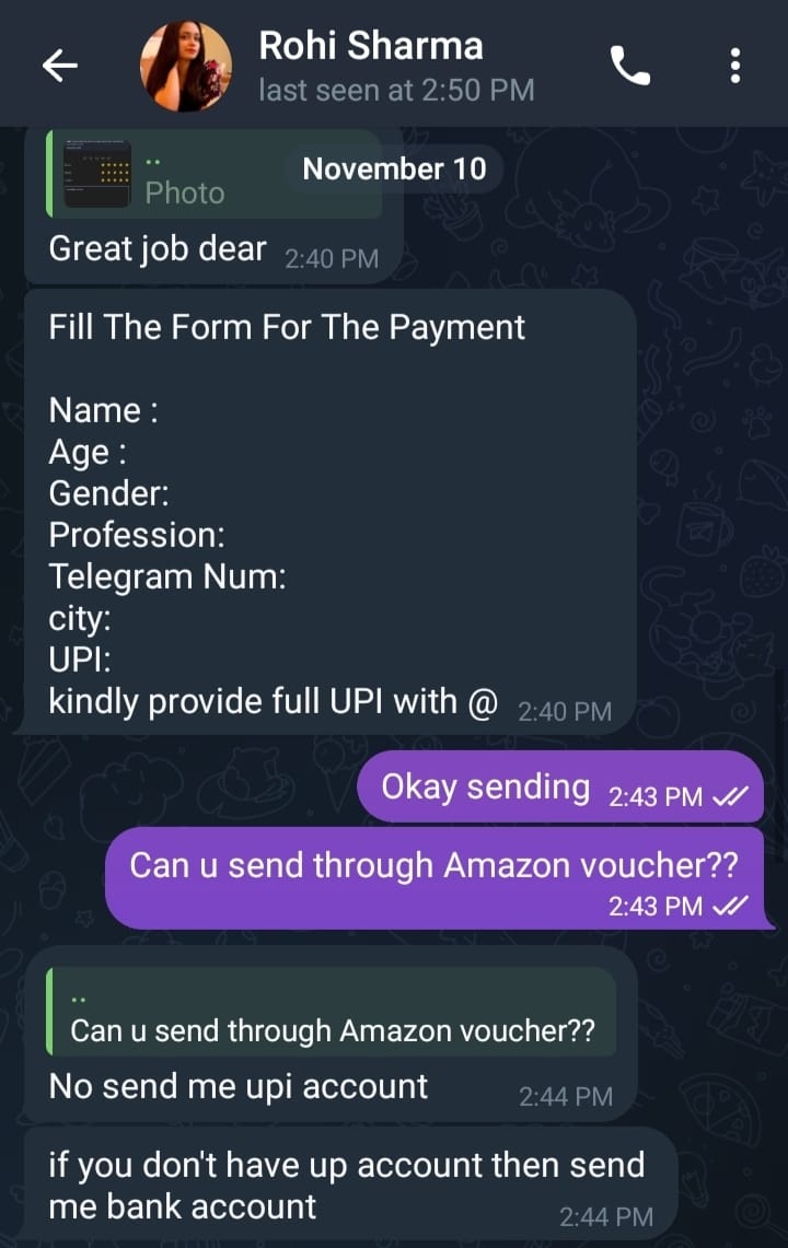 Executive Summary This report documents a coordinated fraud scheme conducted through Telegram, involving fake Google review tasks, financial data harvesting, and an advance-fee premium plan scam. The threat actor promised payment for completing small “demo tasks,” then attempted to obtain the victim’s bank/UPI details and ultimately demanded upfront payment for “reviewer plans.”